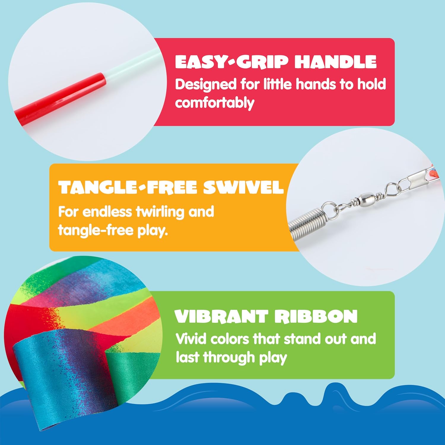 - PREMIUM QUALITY FOR ENDLESS PLAY! The smooth wooden stick is easy for little hands to hold, and the soft, silky ribbon is both lightweight and durable. The ribbon is securely attached, ensuring it can withstand countless hours of twirling and dancing.